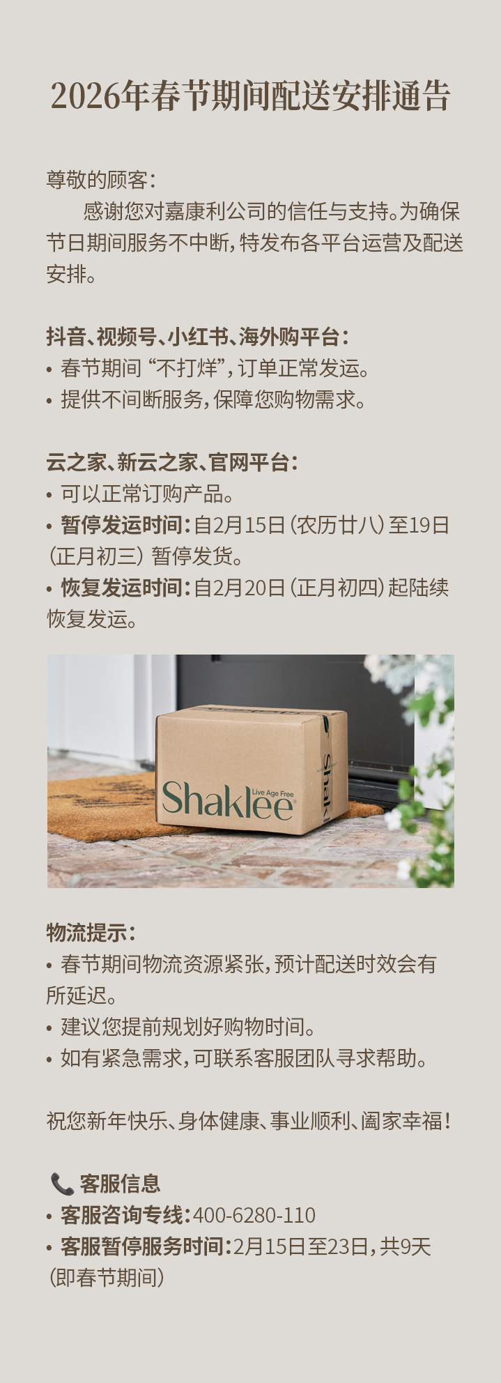 • 2026年春节期间配送安排通告